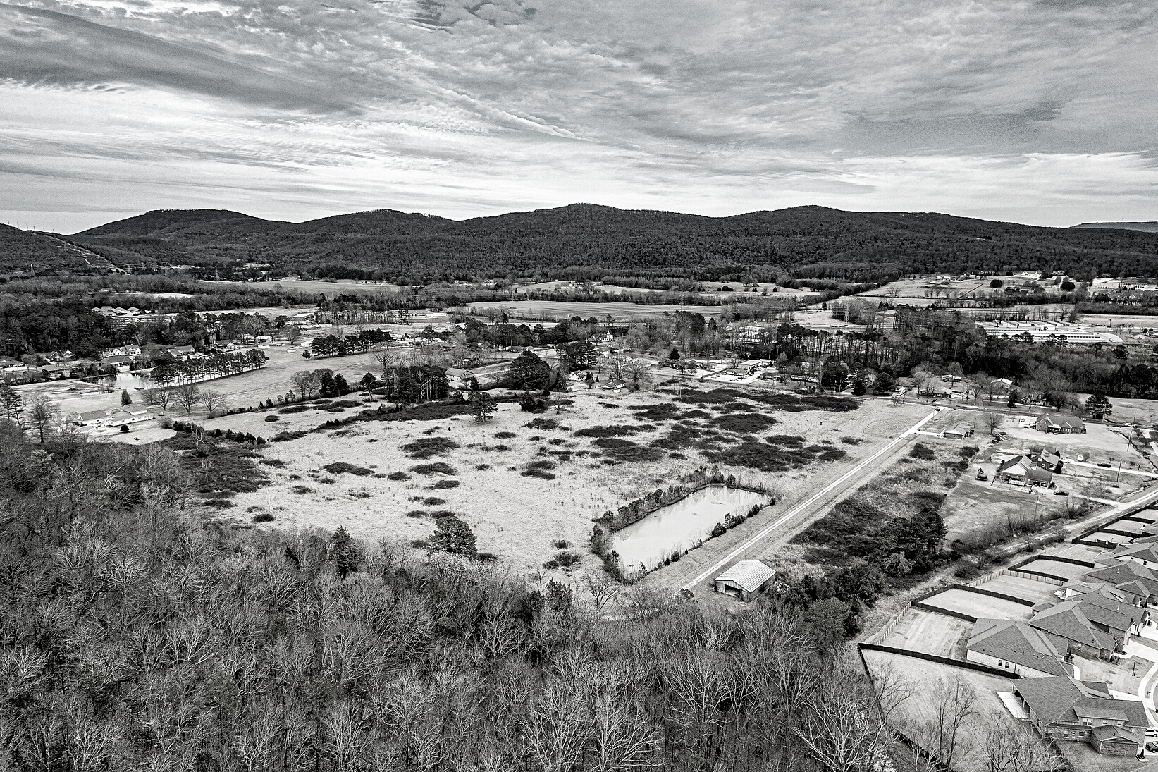 The front of the property is relatively flat pastureland with an existing pond. The back portion is sloped and includes a natural spring, wildlife, rock formations, and opportunity to tie into a planned scenic hiking trail.