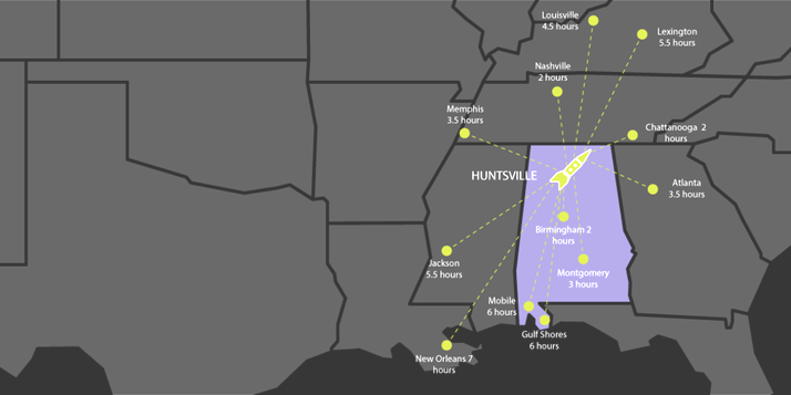 Located in the Tennessee Valley, the “Rocket City” is currently the largest city in Alabama by population and land area. Over the last 25 years, it has experienced explosive growth, fueled by the Base Realignment and Closure (BRAC) initiative of 1995, development of major manufacturing facilities (Mazda Toyota, Blue Origin, Polaris, ADTRAN, and others), and more recent designations such as US Space Command and FBI headquarters. Huntsville Hospital, located in Downtown Huntsville, employs > 15,000 people and is the only Level I Trauma Center in North Alabama. Monte Sano State Park is within Huntsville City Limits between Downtown and Big Cove. Additional local attractions include the VBC (Huntsville Symphony Orchestra, live theater, conventions, and sports), Lowe Mill, the Huntsville Museum of Art at Big Spring Park, Burritt on the Mountain, and a variety of entertainment districts. The newly built Orion Amphitheater at MidCity hosts concerts and special events throughout the year.